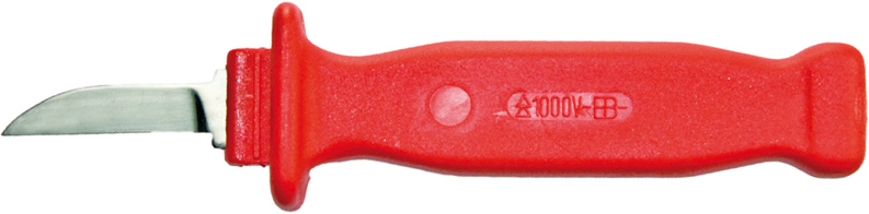 Klinge mit schmaler, gerader Schneide für feine Arbeiten, Griff aus zähelastischem, schlagfestem Kunststoff, mit Klingenschutz